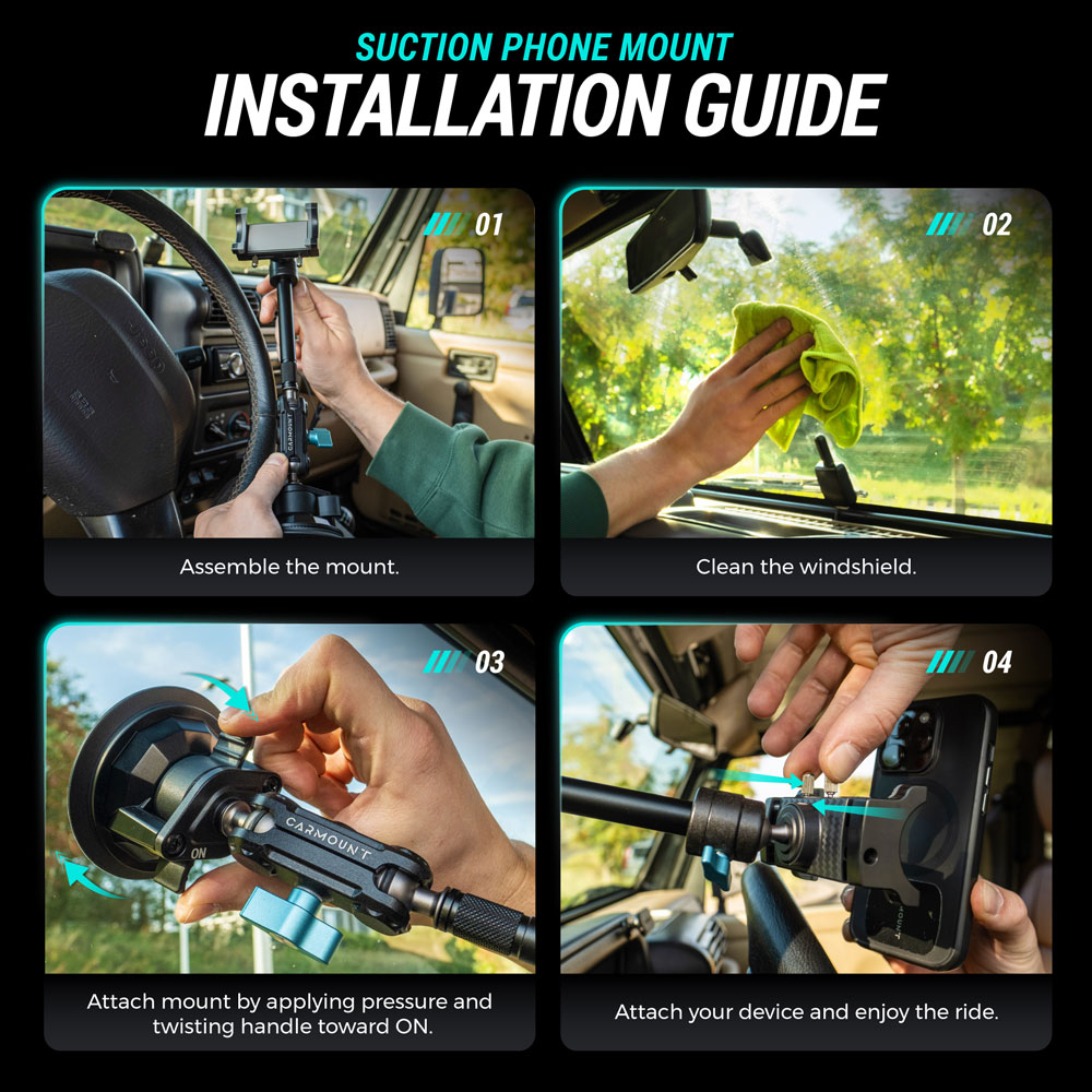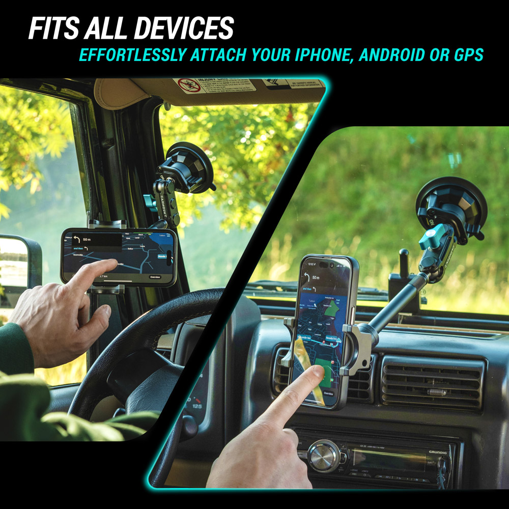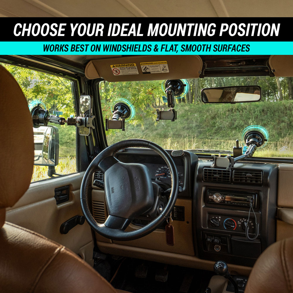 - Holds your phone, GPS, Action Camera and more — even with a far windshield