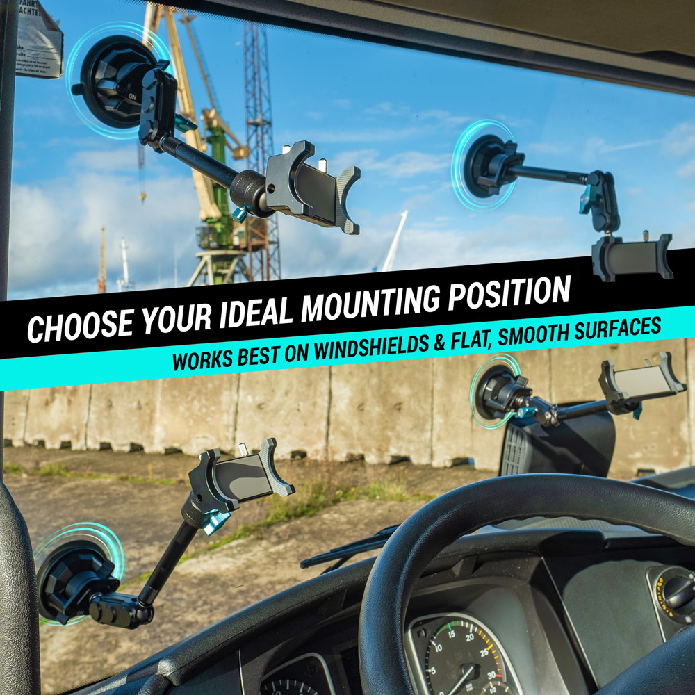 Built for big cabins and long-haul roads, this mount stays rock-solid and keeps your device comfortably within reach no matter the distance.