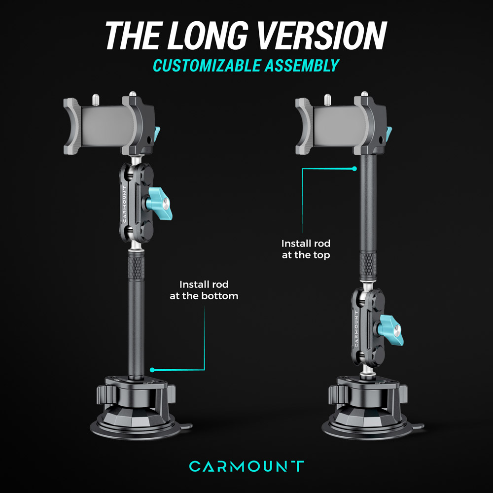 - Package includes Heavy Duty Suction Cup base, Long Extension Arm, Extender Joint, Cradle Grip